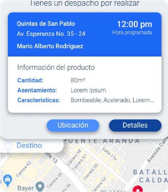 - Avisos instantáneos de inicio del cargue al cliente para facilitar algún cambio en la programación o ajuste del volumen antes de salir de planta.